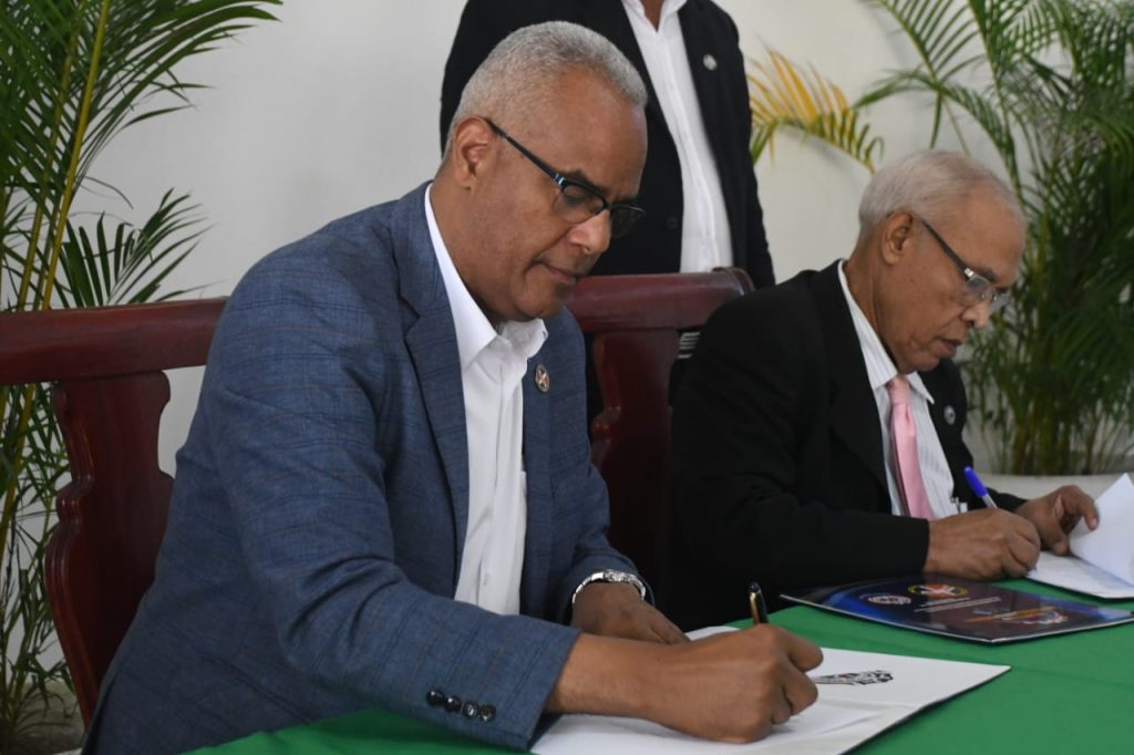 El Mayor General (R) Valerio García Reyes, ERD, presidente de la Hermandad de Veteranos, y el Brigadier General Daniel de Jesús Mones Abreu, director general de la Academia Dominicana de Bomberos, firmaron un acuerdo de colaboración interinstitucional que permitirá la instalación de oficinas de la Hermandad en todas las bases de bomberos disponibles en el país.