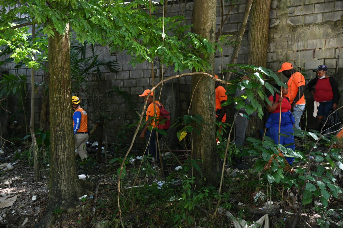 Miembros de la Defensa Civil realizan un rastreo de la zona donde desapareció la menor de 5 años el pasado jueves.