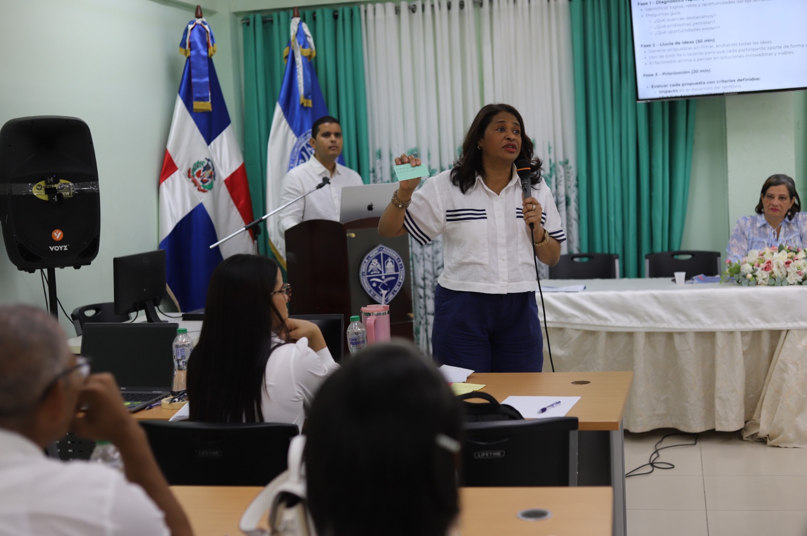 Paula Disla y Hugo Guzmán, moderaron las mesas y coordinaron los trabajos entre los asistentes para gestionar y presentar las propuestas de cada grupo en sus respectivos ejes.